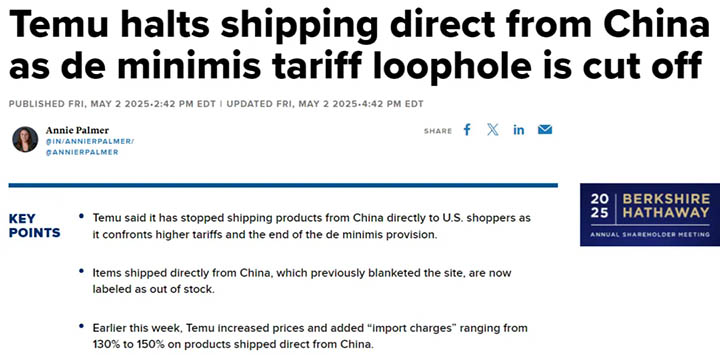 據(jù)路透社消息,相關(guān)舉措帶來了一系列連鎖反應(yīng)。部分電商平臺因形勢所迫,不得不對自身物流體系進(jìn)行重組,同時提高了商品的售價。為有效規(guī)避高關(guān)稅帶來的直接沖擊,這些電商平臺還加快了在美國建設(shè)本地倉庫的進(jìn)程。