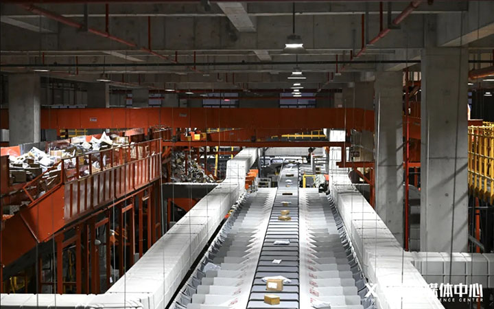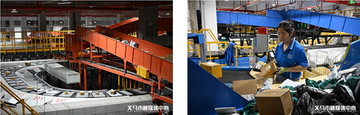 走進義烏中通快遞新科網(wǎng)點,快遞運輸車輛往來頻繁,傳送帶上的快遞絡繹不絕。